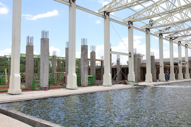 Cabe señalar que, el complejo será totalmente cubierto con estructura de acero y también se prevén áreas exteriores como vialidades de acceso, estacionamiento y áreas verdes. Debido a la magnitud de la obra, se construye en etapas.