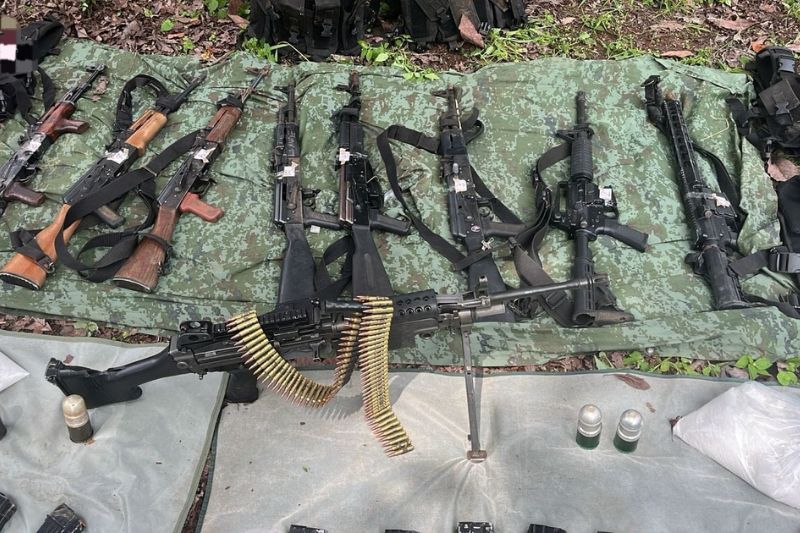 Uruapan, Michoacán, 3 de octubre de 2025.- Elementos de las secretarías de Seguridad Pública (SSP) y de la Defensa Nacional (Defensa) aseguraron una ametralladora, ocho fusiles, cuatro granadas de aditamento, droga y vehículos como resultado de las tareas del operativo Blindaje Uruapan.