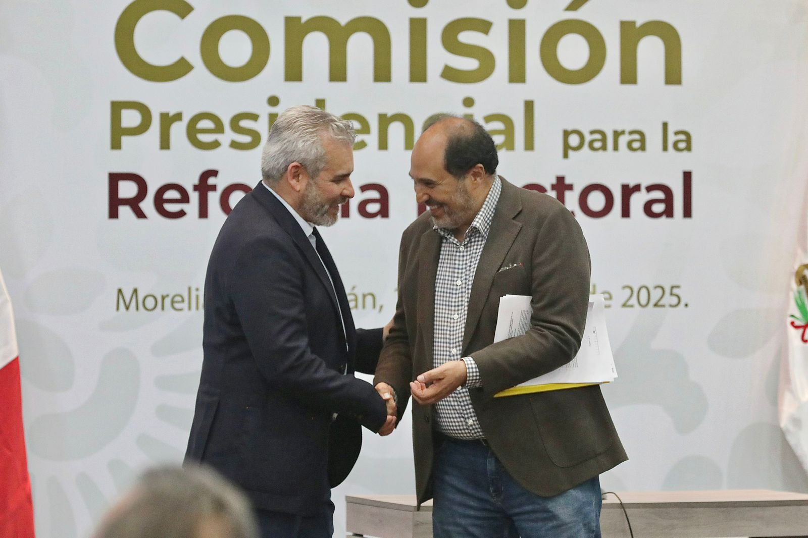 Morelia, Michoacán, 16 de octubre de 2025.- En Michoacán, el gobernador Alfredo Ramírez Bedolla y el jefe de la Oficina de la Presidencia de la República e integrante de la Comisión Presidencial para la Reforma Electoral, Lázaro Cárdenas Batel, pusieron en marcha la audiencia pública de la Comisión Presidencial para la Reforma Electoral, una iniciativa de la mandataria federal, Claudia Sheinbaum Pardo, para confeccionar una propuesta ciudadana acorde a los tiempos actuales con el propósito de generar un cambio verdadero y profundo en el país.