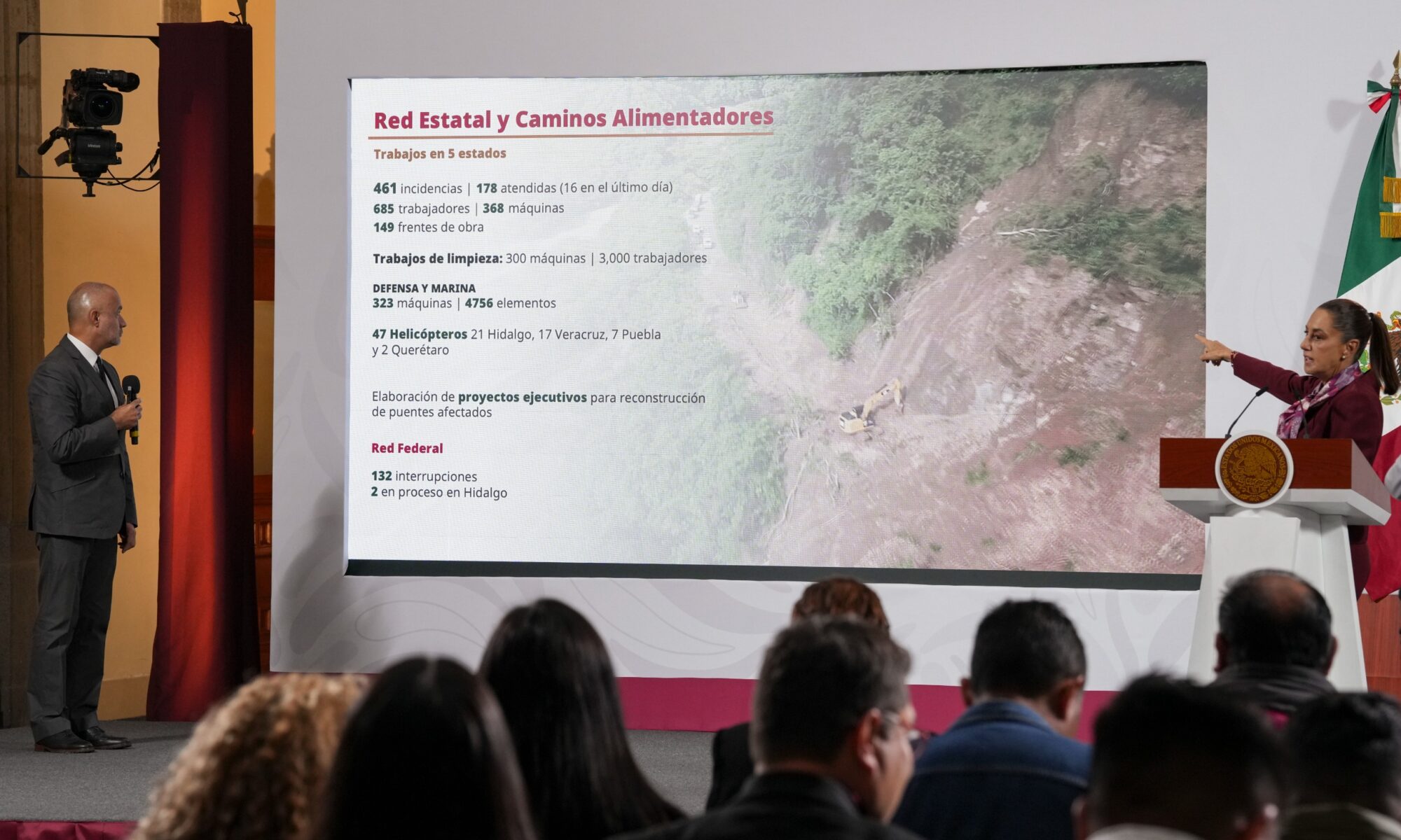La Presidenta de México, Claudia Sheinbaum Pardo, resaltó que la Secretaría de Infraestructura, Comunicaciones y Transportes (SICT), ya elabora los proyectos ejecutivos para la reconstrucción de los puentes afectados por las recientes lluvias en Hidalgo, Puebla, Querétaro, San Luis Potosí y Veracruz.