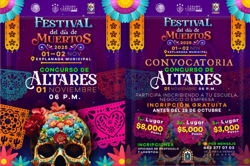Cd. Lázaro Cárdenas.– El Gobierno Municipal de Lázaro Cárdenas invita a participar en el Concurso de Altares que se llevará a cabo el próximo 1 de noviembre a las 6:00 de la tarde, como parte del Festival del Día de Muertos 2025, a celebrarse los días 1 y 2 de noviembre en la Explanada Municipal.