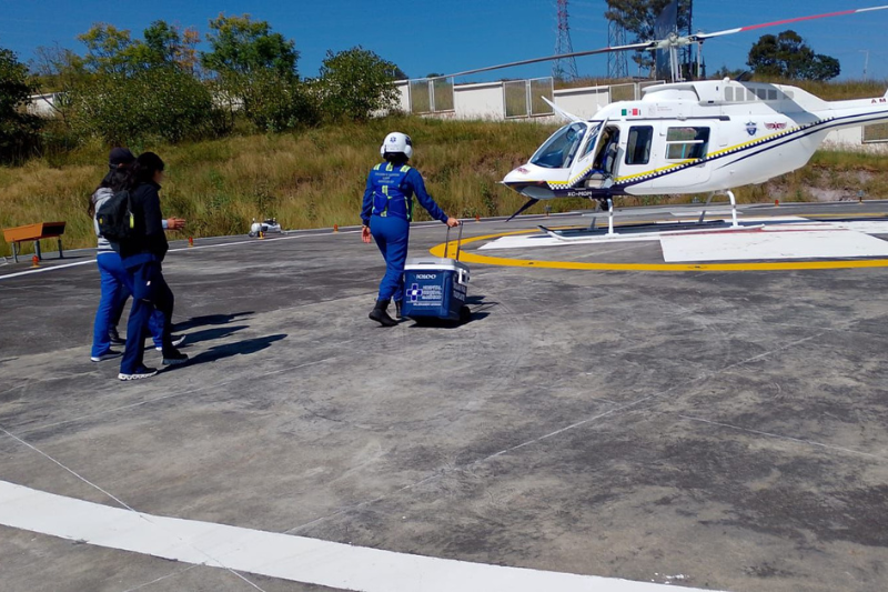La tripulación aeromédica realizó el abordaje del órgano y del personal médico en el helipuerto del Hospital de Alta Especialidad del Instituto de Seguridad y Servicios Sociales de los Trabajadores del Estado (ISSSTE) para ser llevado hacia el Centro Médico Dalinde.