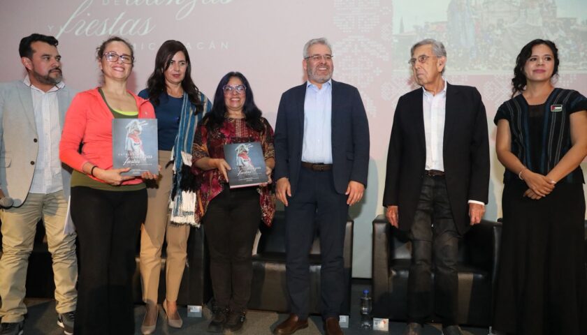 Ciudad de México, 23 de octubre de 2025.- La riqueza dancística y la historia, autenticidad y color de las fiestas de Michoacán quedaron inmortalizadas en una compilación presentada por el gobernador Alfredo Ramírez Bedolla, en la librería Rosario Castellanos del Fondo de Cultura Económica, en la Ciudad de México.
