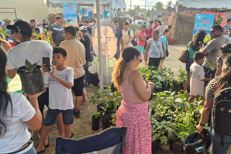 El Gobierno Municipal, a través del Departamento de Ecología Municipal, entregó 500 plantas de diversas especies a la población durante la 31º Expo Tortuga Marina en la tenencia de Playa Azul.