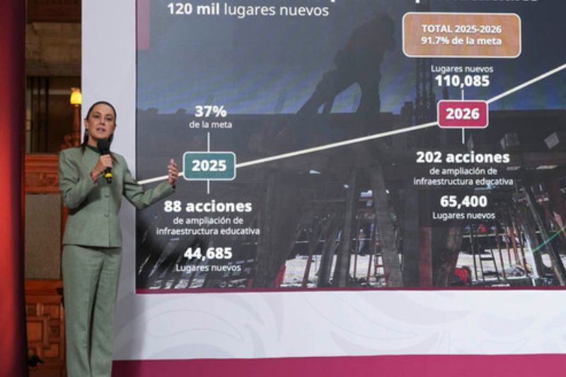 “¿Qué vamos a hacer en el 2026? 65 mil 400 nuevos lugares, es decir, 44 mil 685 más 65 mil 400 con 202 acciones de ampliación; ¿cómo? nuevos planteles, ampliación de planteles existentes y con esto que se llaman los telebachilleratos que le estamos dando una renovación de manera muy importante todos van a estar conectados a internet y están teniendo nuevos esquemas de formación y de enseñanza. De esta manera vamos a cumplir con que haya una preparatoria que quede cerca de la casa”, destacó en la conferencia matutina: “Las mañaneras del pueblo”.