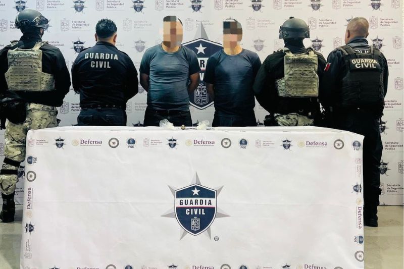 Resultado de las acciones de los agentes de la Guardia Civil, Ejército Mexicano y Guardia Nacional, se logró el aseguramiento de 15 personas, entre los que se encuentran 14 hombres y una mujer, mismos que portaban envoltorios que contenían hierba verde y seca, al parecer mariguana, así como sustancia granulada con las características propias de la metanfetamina.