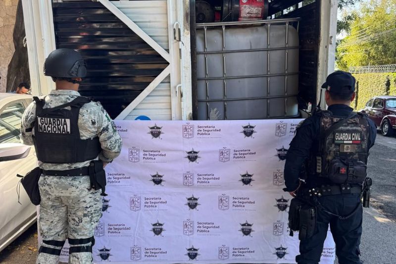 Agentes de la Guardia Civil en coordinación con la Guardia Nacional realizaron la detención del hombre sobre el tramo carretero que conduce a la localidad de San José Cuaro, cuando viajaba a bordo de una camioneta de la marca Ford, en la que transportaba cuatro contenedores tipo cisterna cargadas con el combustible.