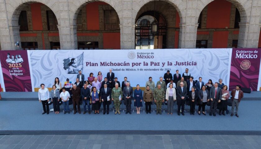 Ciudad de México, 9 de noviembre de 2025.- El gobernador Alfredo Ramírez Bedolla y la presidenta Claudia Sheinbaum Pardo presentaron el Plan Michoacán por la Paz y la Justicia, estrategia integral que contempla 57 mil millones de pesos del Gobierno federal y 2 mil 700 millones del Gobierno estatal para 100 acciones en 12 ejes como seguridad, justicia, salud, educación, infraestructura, desarrollo, entre otros rubros.