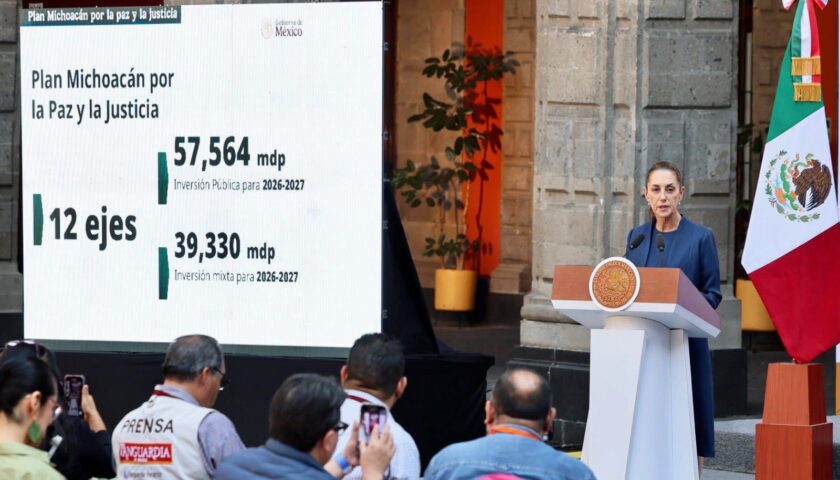 “Estoy seguro de que con usted presidenta, con su compromiso, inteligencia, y sensibilidad, Michoacán volverá a confiar”, refirió el mandatario, tras puntualizar que el Gobierno estatal, acompañará este Plan con 2 mil 700 millones de pesos para seguridad, acciones para jóvenes, cultura, turismo, salud, apoyo al campo e infraestructura.