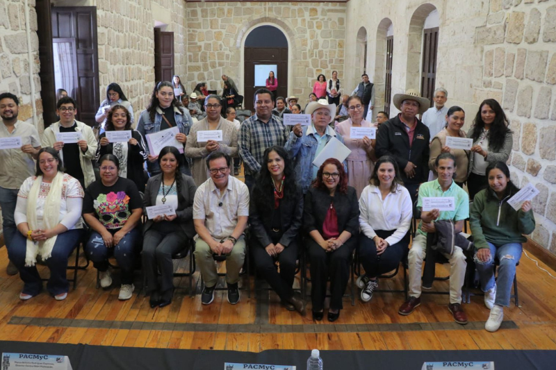 Un millón 312 mil 818 pesos se entregaron a 14 proyectos culturales comunitarios beneficiados dentro del Programa de Apoyo a las Culturas Municipales y Comunitarias (Pacmyc) 2025, cuya convocatoria registró 65 iniciativas provenientes de distintas regiones del estado. Los apoyos permitirán impulsar propuestas de salvaguardia del patrimonio, fortalecimiento identitario, transmisión de saberes y promoción cultural en municipios de las regiones Sierra Costa, Lacustre, Oriente, Meseta y Ciénega.