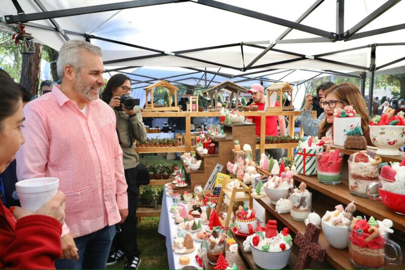 Morelia, Michoacán, 5 de diciembre de 2025.- El gobernador Alfredo Ramírez Bedolla inauguró la Feria del Bosque Navideño 2025, donde se ofrecen diversos productos provenientes de 20 municipios del estado como árboles de Navidad, esferas de Tlalpujahua, nochebuenas, artesanías de madera, resinas, plantas medicinales, aromáticas y diversos alimentos.