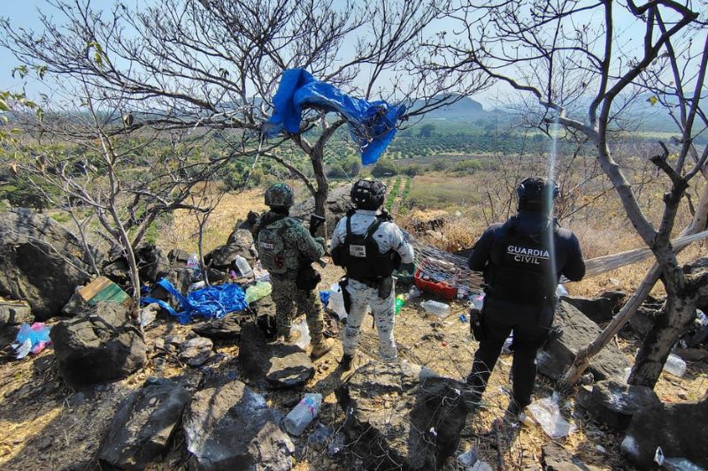 Apatzingán, Michoacán, 17 de diciembre del 2025.- Dentro de las acciones del Plan Michoacán por la Paz y la Justicia, los elementos de las secretarías de Seguridad Pública (SSP) y de la Defensa Nacional (Defensa) localizaron e inhabilitaron 15 artefactos explosivos improvisados y destruyeron un campamento clandestino en el municipio de Apatzingán.