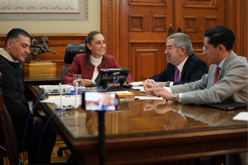 Durante la llamada telefónica, la Presidenta de México estuvo acompañada por el secretario de Relaciones Exteriores, Juan Ramón de la Fuente; el secretario de Seguridad y Protección Ciudadana, Omar García Harfuch, y el subsecretario para América del Norte de la Secretaría de Relaciones Exteriores, Roberto Velasco Álvarez.