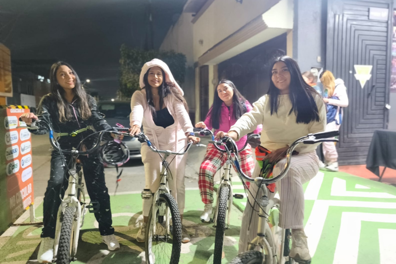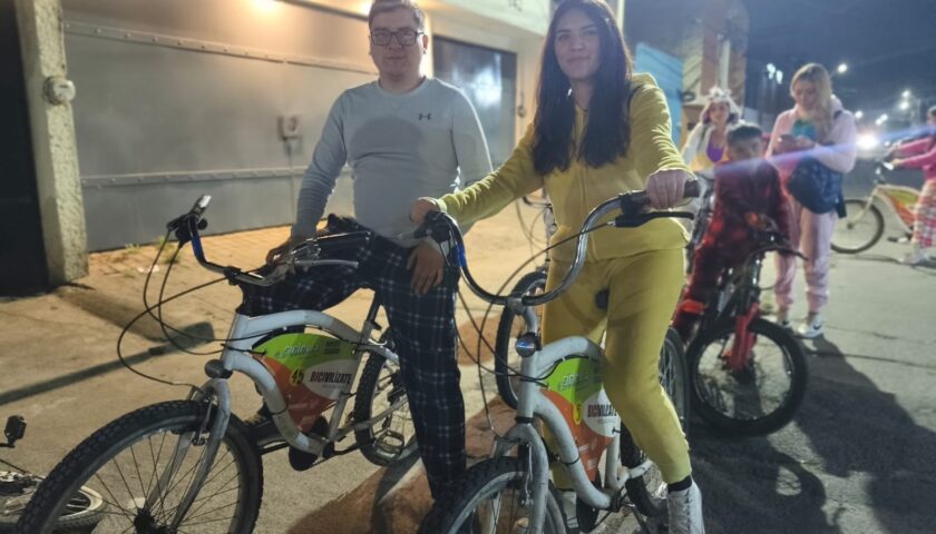 Más de 150 pedalistas del Paseo Nocturno se vistieron con sus mejores prendas de dormir y tomaron las calles en sus bicicletas. La ruta urbana, de nivel fácil, permitió a los participantes recorrer algunas calles de la ciudad de una manera distinta a la habitual. La caravana llamó la atención de propios y extraños que sonreían sorprendidos al ver pasar a los ciclistas en pijamas.