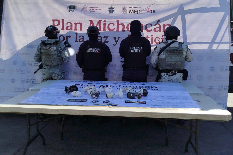 Jacona, Michoacán, 28 de enero del 2026.- Resultado de un operativo interinstitucional coordinado entre los elementos de la Secretaría de Seguridad Pública (SSP), de la Guardia Nacional (GN), y la Policía Municipal de Jacona, se aseguró un circuito de videovigilancia conformado por nueve cámaras, presuntamente utilizado por un grupo de la delincuencia organizada.