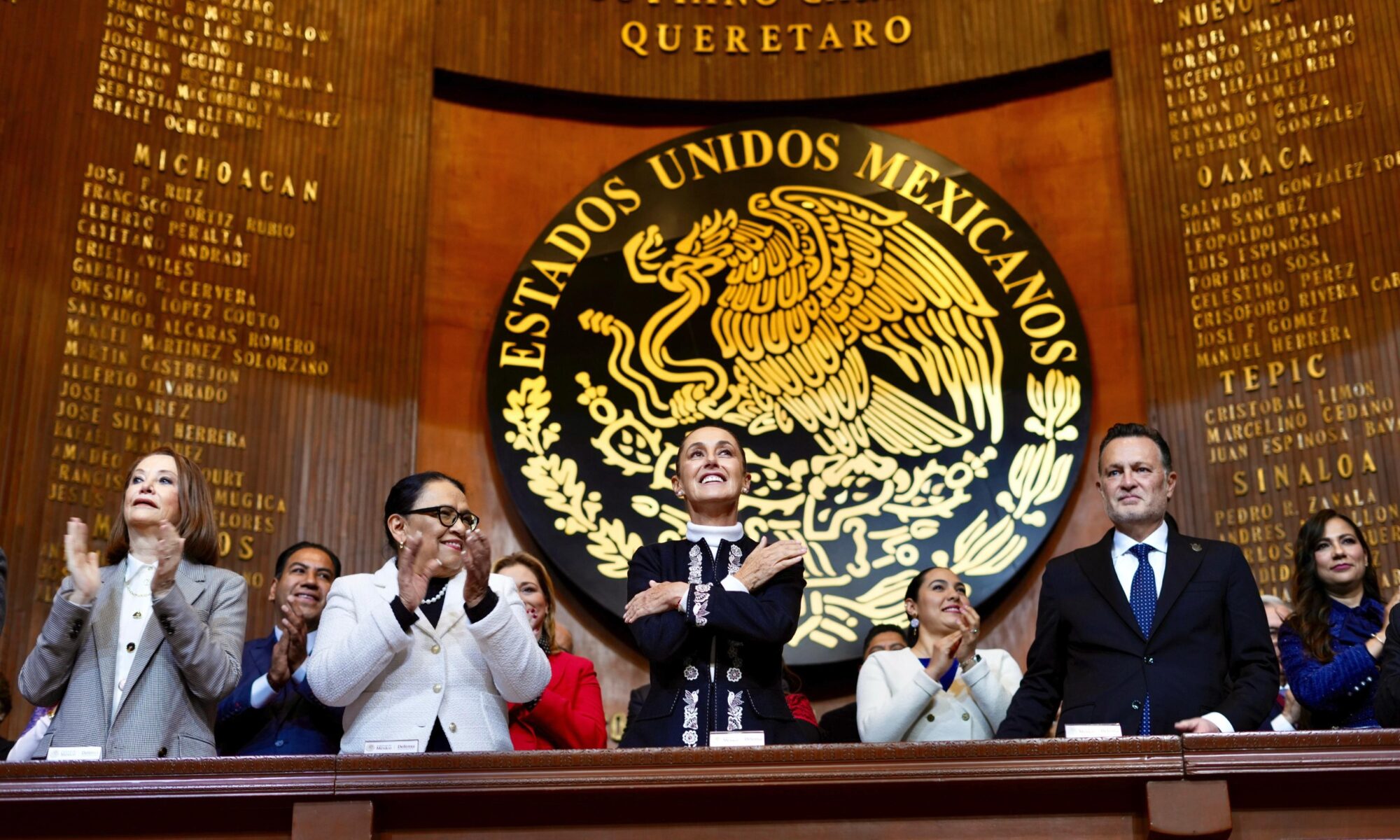 En la ceremonia conmemorativa, que se llevó a cabo este 5 de febrero en el Teatro de la República en Querétaro, la mandataria mexicana señaló que la Carta Magna plasma la lucha del pueblo de México, de mujeres y hombres que desafiaron al poder para garantizar la soberanía, libertad, democracia, justicia social y dignidad en nuestro país.