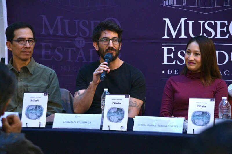 Morelia, Michoacán, 14 de marzo de 2026.- La Secretaría de Cultura de Michoacán (Secum) presentó en el Museo del Estado el libro “Piñata”, de Adrián O. Iturriaga, obra ganadora en la convocatoria Palabras de Colibrí 2025 en la categoría de Narrativa. La publicación reúne cuatro relatos que abordan la niñez atravesada por distintas formas de violencia.