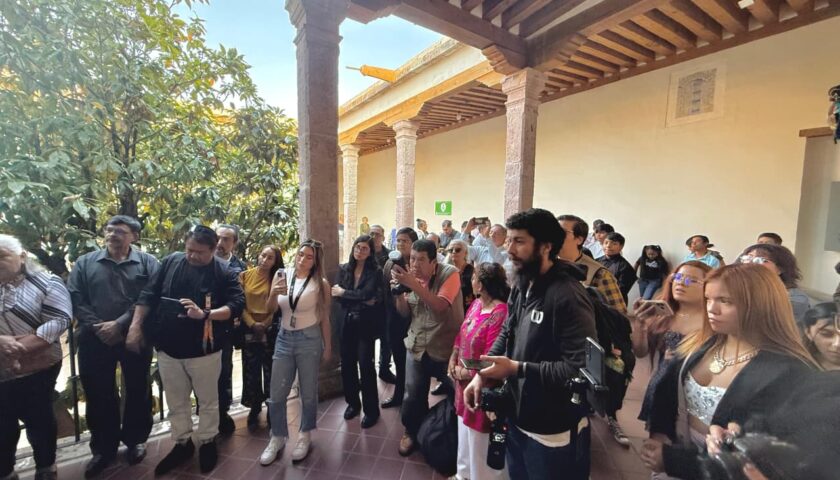 Morelia, Michoacán, 10 de abril del 2026.- La Secretaría de Cultura de Michoacán y el colectivo Amigos del Arte en Michoacán A.C. inauguraron la exposición “El arte en Michoacán”, homenaje a Francisco Rodríguez Oñate y Nicolás de la Torre Calderón, en el Museo del Estado de Michoacán, una muestra que reconoce la trayectoria de dos figuras fundamentales en la construcción de la identidad visual del estado.