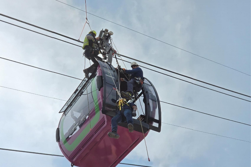 Estas actividades no solo consistieron en teoría, sino en intensas jornadas prácticas que simularon escenarios reales de falla o contingencia. Gracias a este entrenamiento, se refuerza la aplicación de protocolos de seguridad internacionales, minimizando riesgos tanto para el personal de rescate como para las y los usuarios del teleférico de Uruapan.