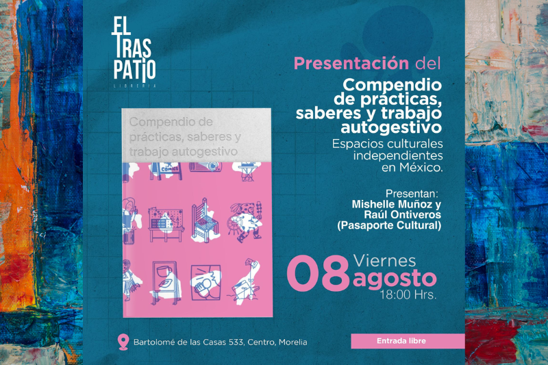 Conoce el libro “Compendio de prácticas, saberes y trabajo autogestivo. Espacios culturales independientes en México”, en compañía de Mishelle Muñoz y Raúl Ontiveros, del proyecto “Pasaporte Cultural”.